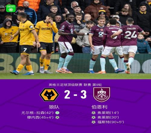 伯恩利客场32狼队,弗莱明双响,福斯特替补绝杀