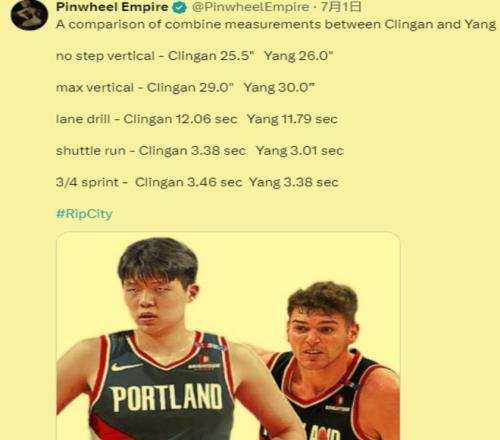 据悉,在队内训练中,杨瀚森每次对位克林根都占尽优势,因为他进攻手段多,而克林根是一个偏防守型的蓝领球员。而且,杨瀚森的静态天赋也全面碾压克林根,无论是原地垂直起跳、助跑最大垂直弹跳、敏捷度测试、折返跑和3/4场冲刺,都比对方优秀。