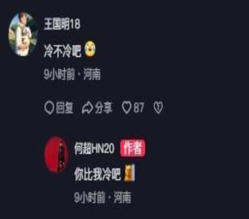 在该动态评论区,河南队门将王国明留言:“冷不冷吧。”随后,何超回复道:“你比我冷吧。”
